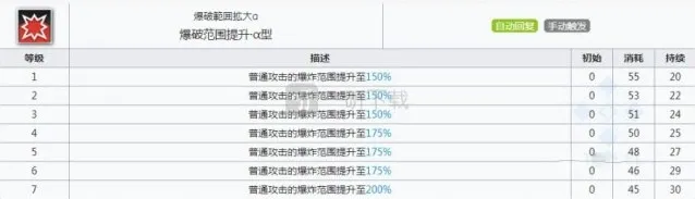 空爆作为一个三星干员,自然也是只有1个技能,可以说空爆的技能也是非常寒酸,居然没有加成任何攻击力,作为群狙本身就是群体输出了,加强攻击的爆炸范围真的是没什么用,可以说空爆的技能就基本没有什么升级的必要…