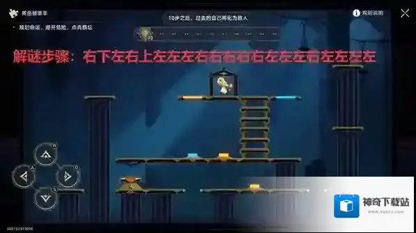 3、解谜步骤:左左左上右右右右左左左左上右右右