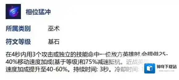 1、相位猛冲:技能命中后提供爆发移速,增强机动性。