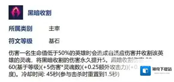 1、黑暗收割:低血量斩杀,增强收割能力。