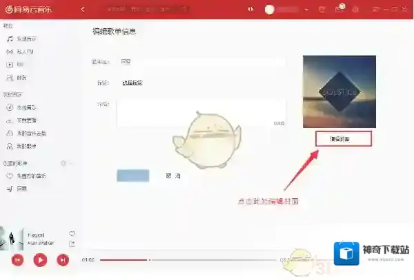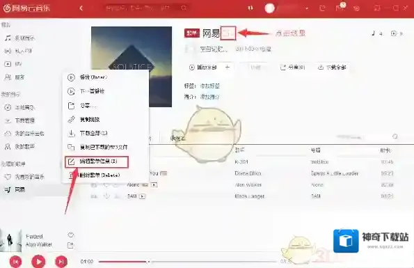 2、接着我们右键想要更换封面的歌单,选择“编辑歌单信息”,或者点击歌单名字旁边的“编辑”按钮打开该歌单的编辑页面如下图: