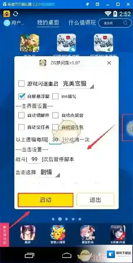 1、打开安卓模拟器,并将模拟器分辨设置720*1280后,运行游戏。