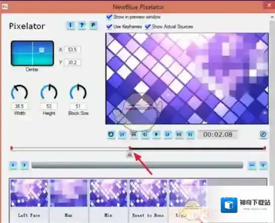 3、如果要打马赛克的物体活动范围比较大,例如从左边移动到右边,先选择左边left face,在移动位置时间上点击right face,上面会出现一个红点,这样马赛克就会从左边移动到右边了,