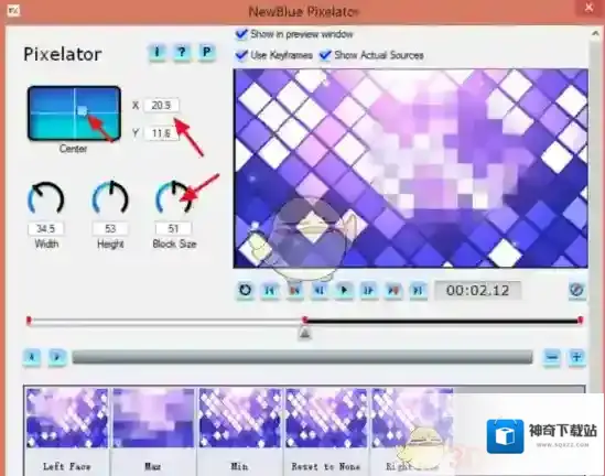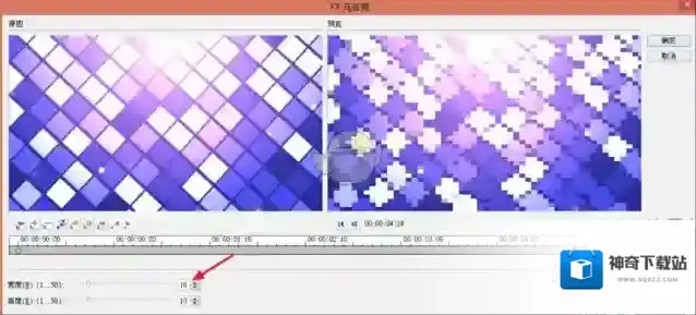 2、和上面一样双击选择自定义滤镜,弹出下面的窗口,可以设置位置、赛克的大小,