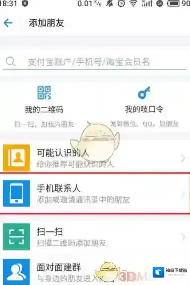 1.正常情况下,能访问手机通讯录的支付宝,在打开添加好友页面时,一般下面第一张图所示,而不能正常访问通讯录的支付宝,一般会像下面第二张图所示: