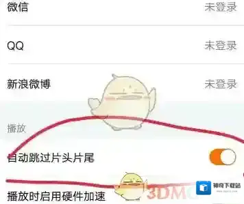 4、进入设置里面以后就可以找到“自动跳过片头片尾”选项;
