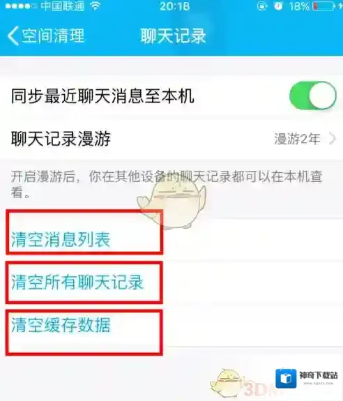 6、点击QQ缓存数据清理跳转如下页面,如下图所示依次点击删除“清空消息列表”“清空所有聊天记录”“清空缓存数据”就可以彻底清除QQ数据了。