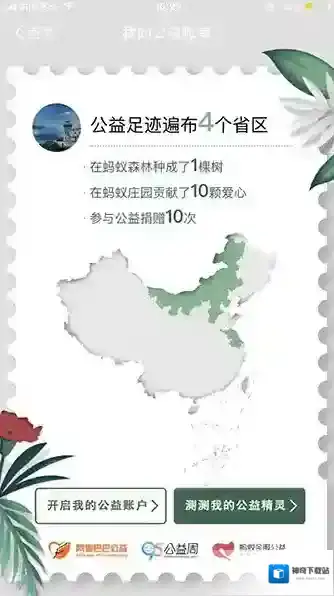 4、最后大家可以分享相关的,如下方的“测测我的公益精灵”、“开启我的公益账户”等,查看更多的信息内容。