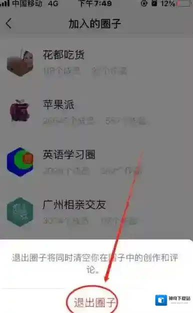 6、然后在下面的弹框上点击“退出圈子”即可!