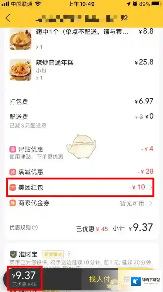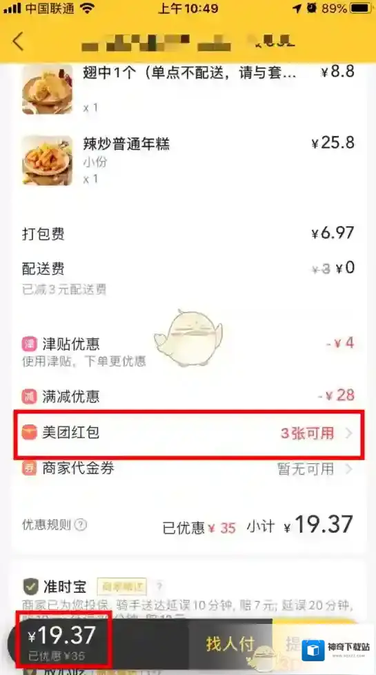 5、当前价格是19.37元,我们点击“美团红包”使用