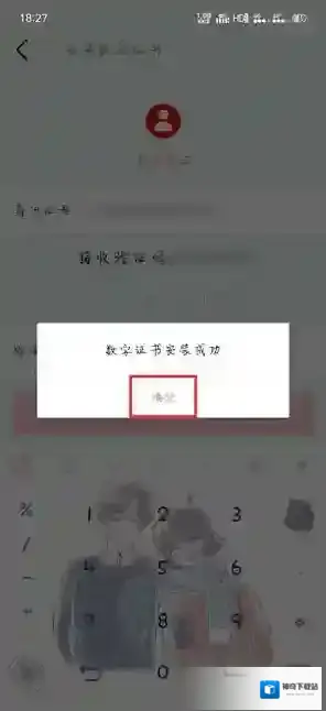 5、验证通过之后,会提示“数字证书安装成功”,点击确定返回,设置一个6位数支付密码;
