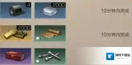 10分钟内完成可获得金条*2000、护甲材料lv1