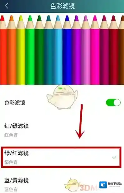 5、在色彩滤镜页面,单击色彩滤镜打开功能开关
