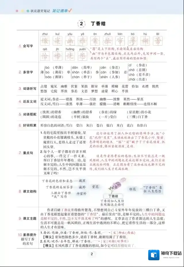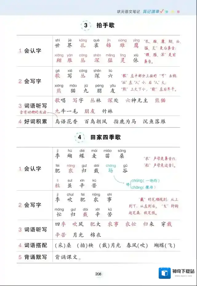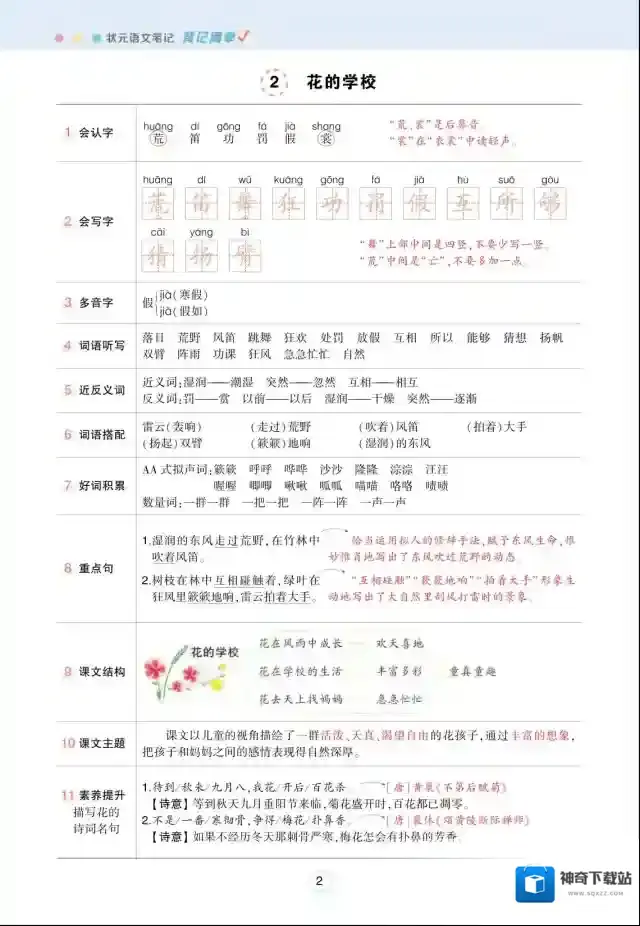 状元语文笔记(背记清单)2年级上册PDF百度云网盘