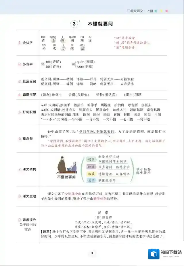 状元语文笔记(背记清单)3年级上册 pdf格式 百度云网盘