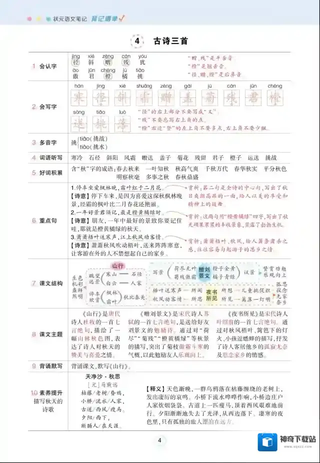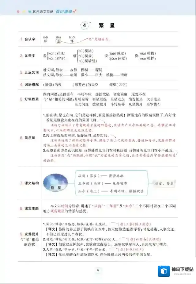 状元语文笔记(背记清单)小学4年级上册 pdf 百度云网盘