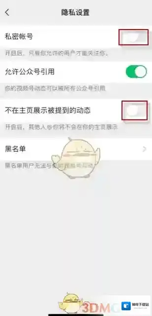 6、将私密账号和不在主页展示被提到的动态开启即可。