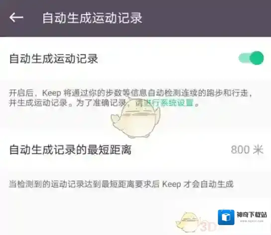 3、在运动设置的页面中,点击自动生成运动记录的选项