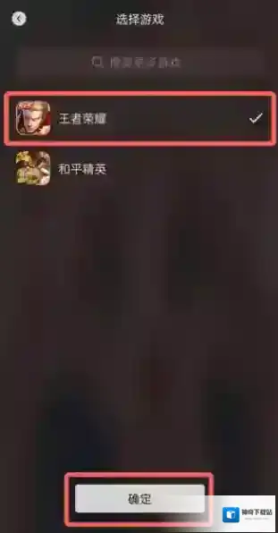 5、进入之后,点击选择“王者荣耀”,然后点击下面的“确定”。