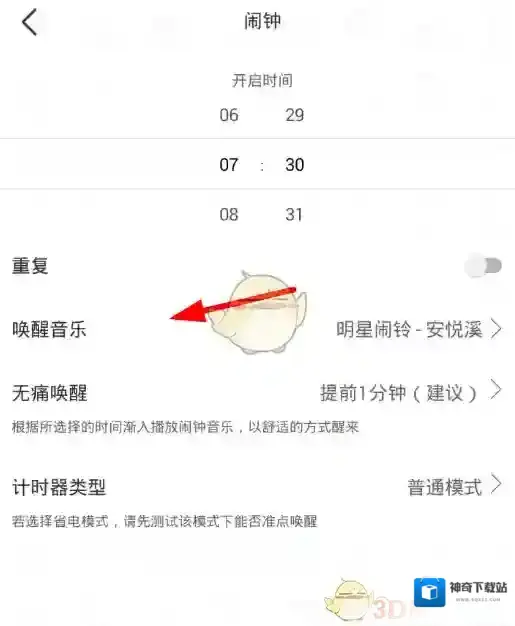5、这样一来即可从闹钟设置页面中进入编辑页面,设置明星闹钟作为唤醒音乐了。