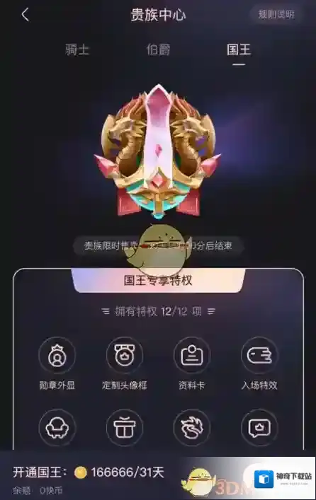 3、国王,价格166666快币/31天,合人民币16666一个月