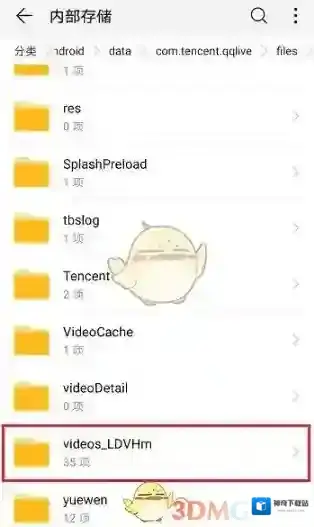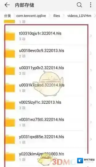 4、进去videos_LDVHm文件夹之后,里面都是手机腾讯视频缓存的视频文件