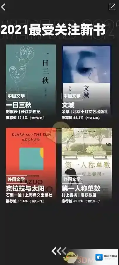 4、最后可看到2021最受关注新书、最受关注影视原著等等内容。