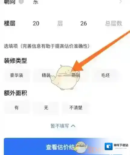 5、为了更精准的估值,我们点击下方的按键可以填写更多内容,比如选择精装修;