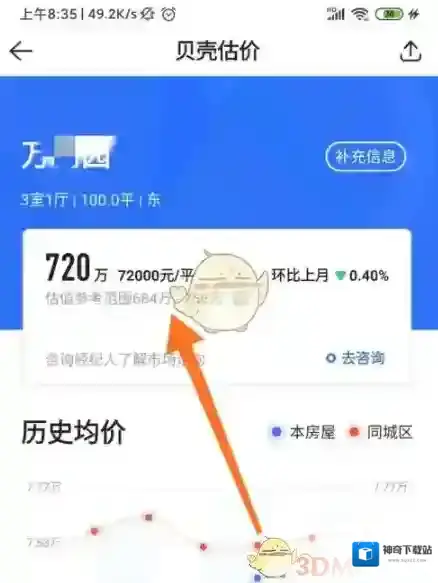 6、设置完毕点击估价,软件就会自动显示当前房价数据。