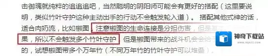这点大家一看就懂了。这是在之前为了削弱独眼小僧而进行的改动,在椒图连线后,攻击除了独眼小僧的其它式神,不会触发小僧的被动。想必策划的意思就是,椒图连线后,打其它式神不会多次触发竹叶守护状态下的万年竹被动。