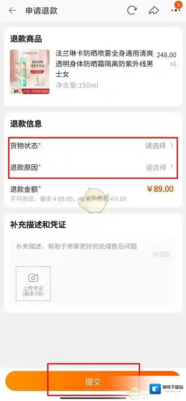 5、填写退款信息后,点击提交即可申请退款。
