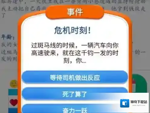 原地等死呢,就是真的在原地等着被撞。基本上实惠被撞死的,运气好没死也会有半身不遂(我选择碰瓷),这个选项几乎都是损失最大的,不建议选择。
