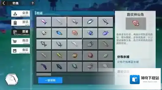 选择好鱼后,建议点击图鉴,图鉴的右下脚有分布水域,知道分布水域后去地图上找,非常的方便。钓10天左右基本上就非常熟悉鱼的分布了。