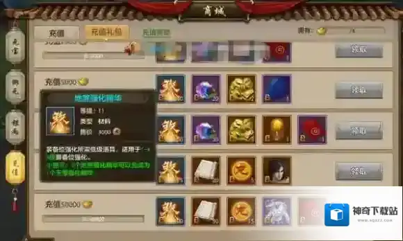 还有很多方法可以获得。首先是银两商城每周可以限量购买,然后是每日1元礼包,每天可以购买一次,25个地煞强化精华。累计充值礼包中,每个档次的礼包都可以领取一些,总计325个地煞强化精华。帮会商店中,每周可以限量兑换。