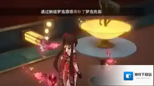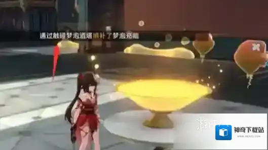 3、在公馆第一层找到充能的酒池并进行充能,在红色气球附近点击充能并向上走。