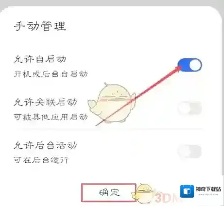 5、手动管理,点击允许自启动即可,如图所示。
