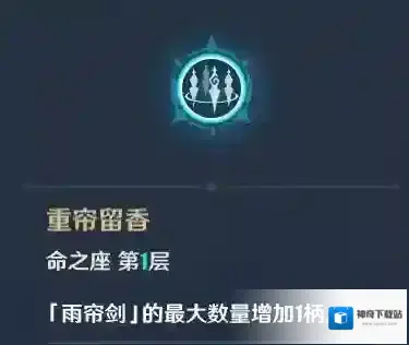 命之座技能非常重要。作为4星角色,行秋的命星抽取并不难,能点几颗就点几颗,尤其第一颗命星就是一剂33%的加强!第一层-重帘留香:雨帘剑3把变4把,更加为所欲为。