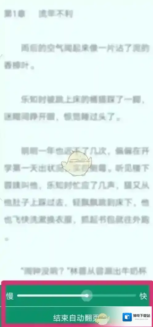 4、设置成功后,点击屏幕中间位置可以设置自动翻页的速度和结束自动翻页。