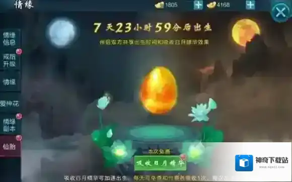 2.吸收日月精华可加速出生,双方每天可免费和付费各吸收一次,每次加速6.0小时。