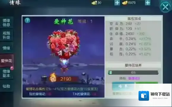 1.结婚后开启爱神花培养系统,消耗爱情花进行培养升级,爱情花通过情缘副本获得。