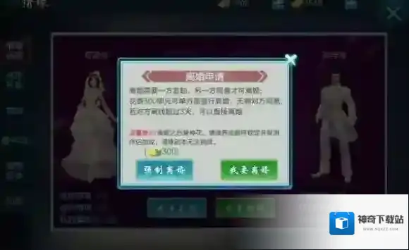 2.单方强制离婚,为单人操作,需要扣除发起方300绑定元宝。