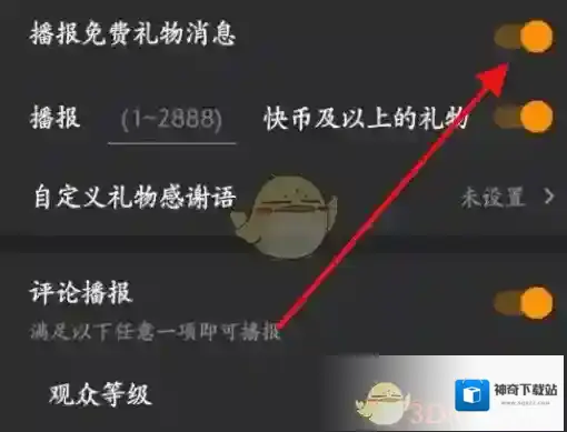4、再找到播报免费礼物消息,关闭右侧开关即可。