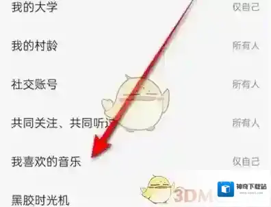5、页面跳转后,在“我喜欢的音乐”这一项上面点击。
