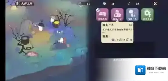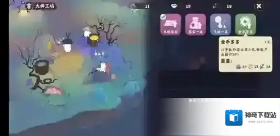 大师工坊选择再多一点提高产能,再选择金币多多提高赚钱效率。