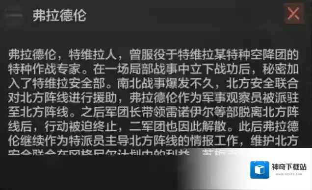 多斯雇佣黑金国际保镖相关信息另外有几位我们熟悉的联络人,同样曾与黑金国际有密切关联。首先是大家熟悉的新人教官乔尔·加里森。乔尔大叔在年轻时在家乡从事教育工作,在故乡陷入战乱后失去了亲人并加入了游击队。后来以雇佣兵的身份来到卡莫纳,带领战斗小队,完成黑金国际的任务。不过在后来一次任务中,乔尔所在小队遭遇重创,他自己也身负重伤,险些丧命。经此一役,乔尔便退出了黑金国际,以代理人的身份为新来到卡莫纳的自由雇佣兵(也就是玩家们)提供训练指导,并派发任务。