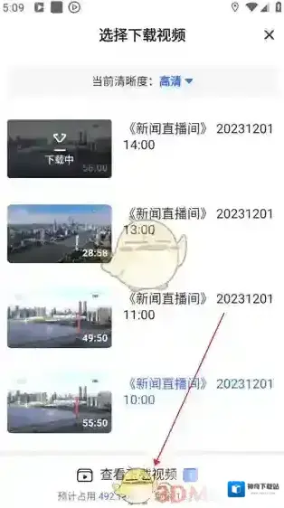 3、选择清晰度,点击要下载的《新闻直播间》视频即可开始下载。