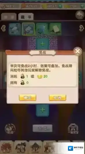 没有错!你也有可能失去寻找已久的珍宝藏书碎片,不过不必紧张,也不用冒着背包空间不够的风险急忙合成碎片,小编自然会告诉你解决的办法!夺宝界面左下角有一个免战的标志,点击它挂起两小时的免战牌,时间长度还能叠加,这样就可以强行免疫抢夺了,是不是一个很棒的设定呢!但是在免战期间抢夺其他玩家,免战效果就将消失。小编我向来都是挂着免战牌直到两小时结束,因为我的心愿是……世界和平……
