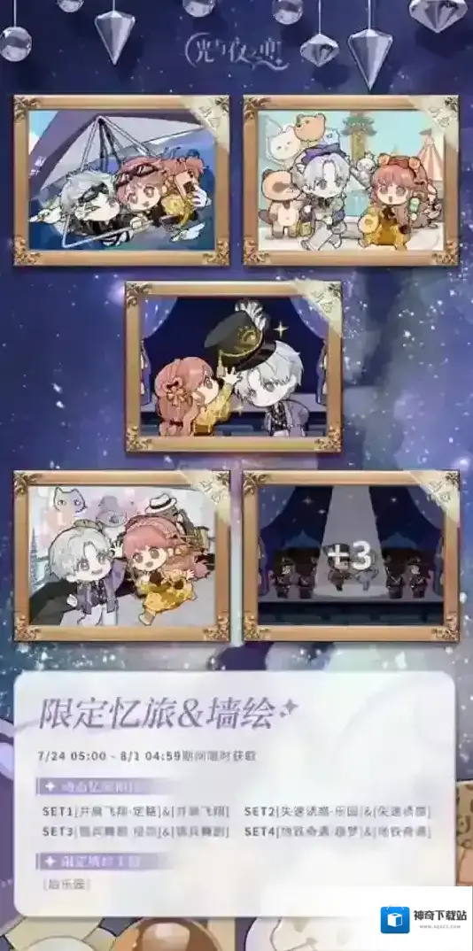 完成庆生后,7月25日05:00起将开启 重返乐园 玩法。和他一起浪漫约会,完成童年未竟的心愿,解锁动态漫画与剧情章节。