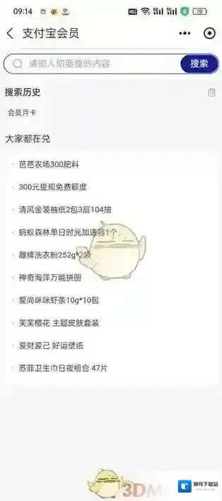 3、接着来到支付宝会员的页面中可以领取积分,在这里点击搜索按钮;