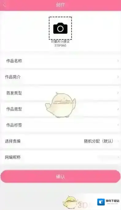 4、然后用户就可以创作专属于自己的作品了,输入作品名称、类型等信息,点击确认即可开始创作内容。